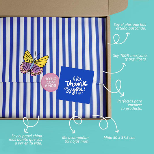 Papel China Mariposa Azul 100 Pz 50x37.5cm