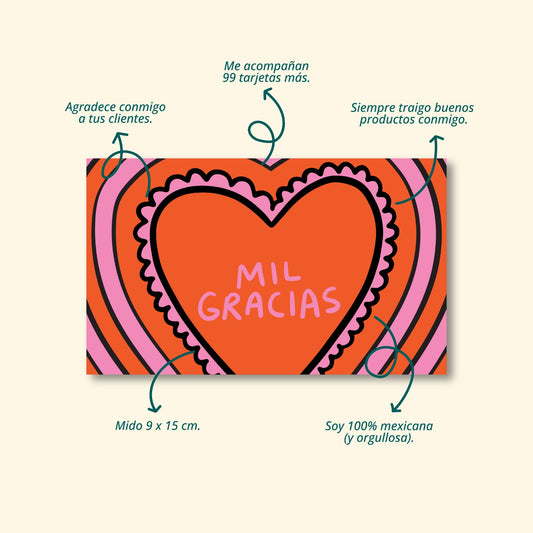 Tarjetas Mil Gracias 100 Pz 15x9cm