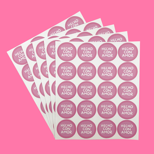 Stickers Hecho Con Amor Rosa 100 Pz