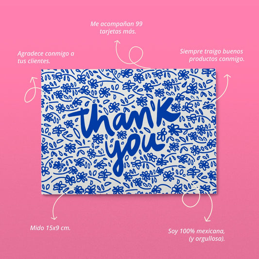 Tarjetas Thank You Azul 100 Pz 8x8cm