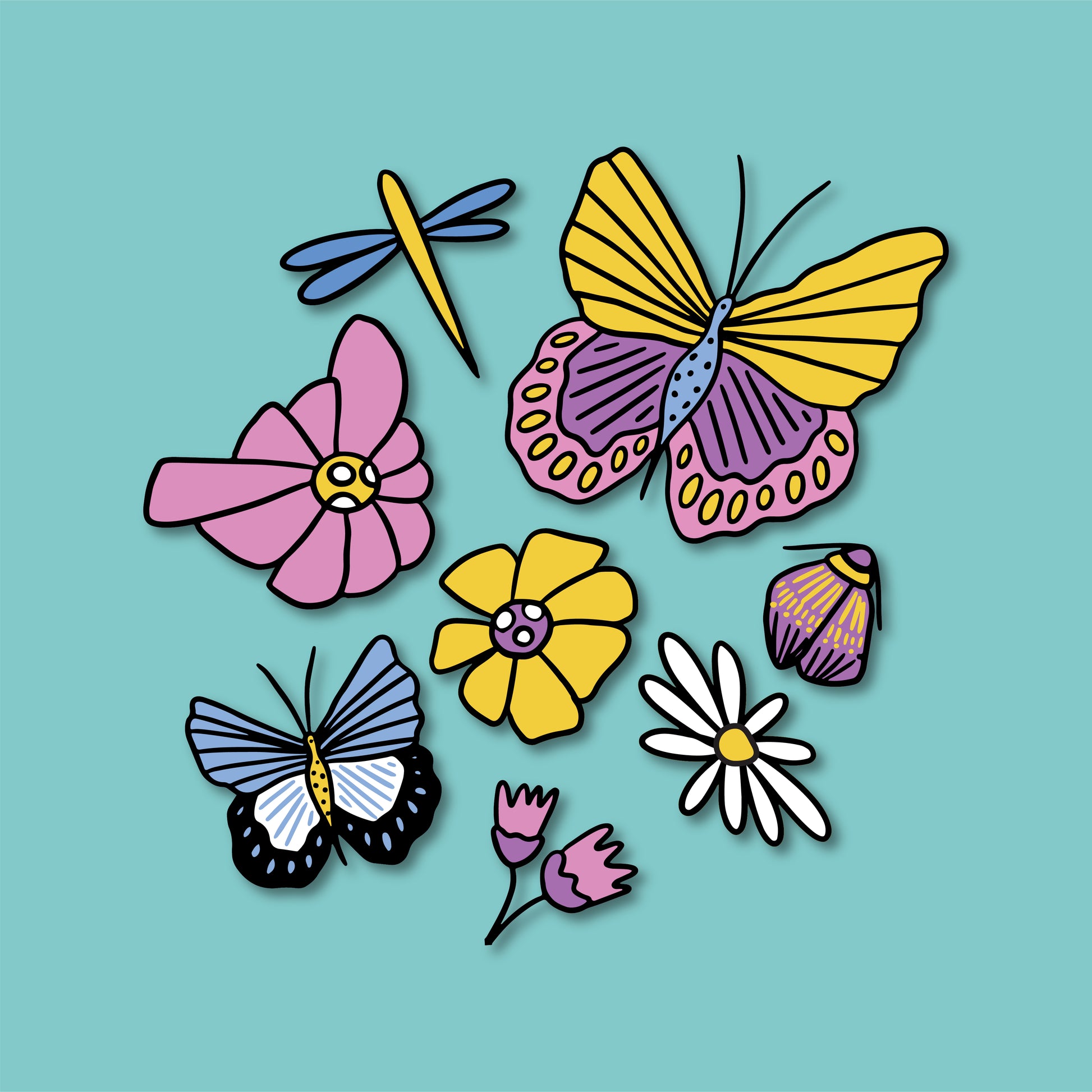 Stickers Mariposas y Flores 100 Pz