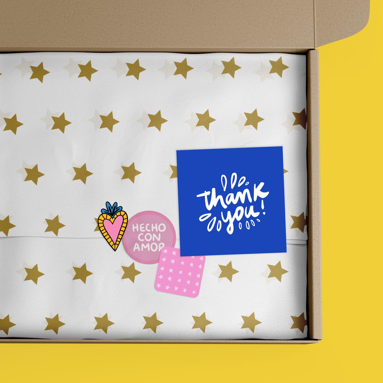 Empaques únicos creados con diseñadoras mexicanas para un unboxing con estilo.